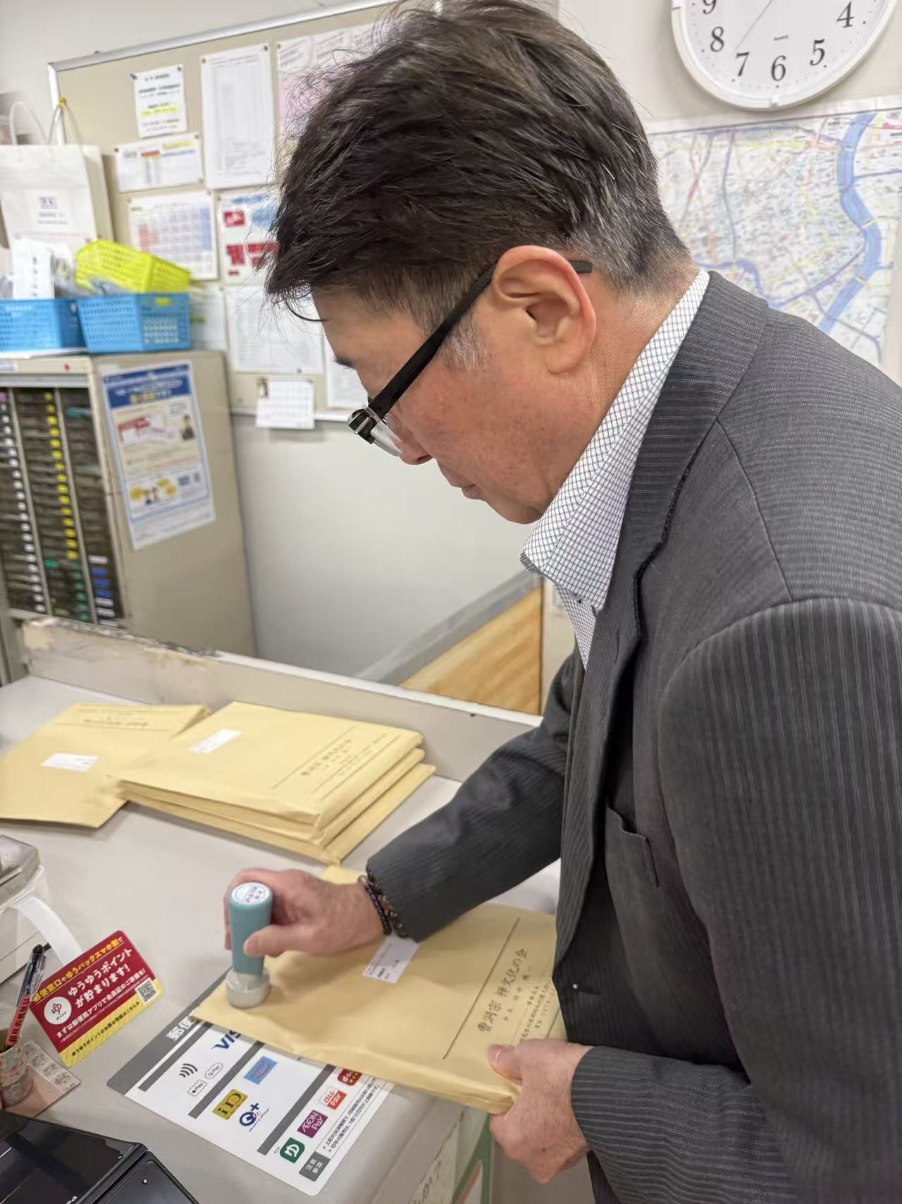 作業内容は、宛名シールの貼付、同封物の準備(会報・案内文・郵便振替用紙等)を行い、翌23日には宇治社長と事務局により、銀座郵便局への持込・料金別納処理を完了いたしました。約300通の会報が無事に会員各位のもとへ発送されました。
